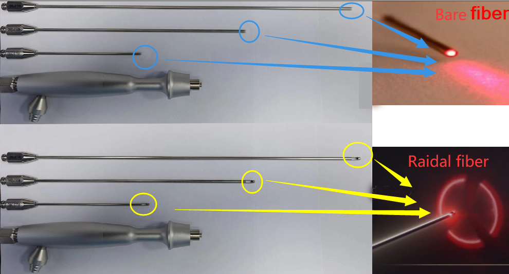 Laser fiber terminal: Connects to laser generators at the proximal end