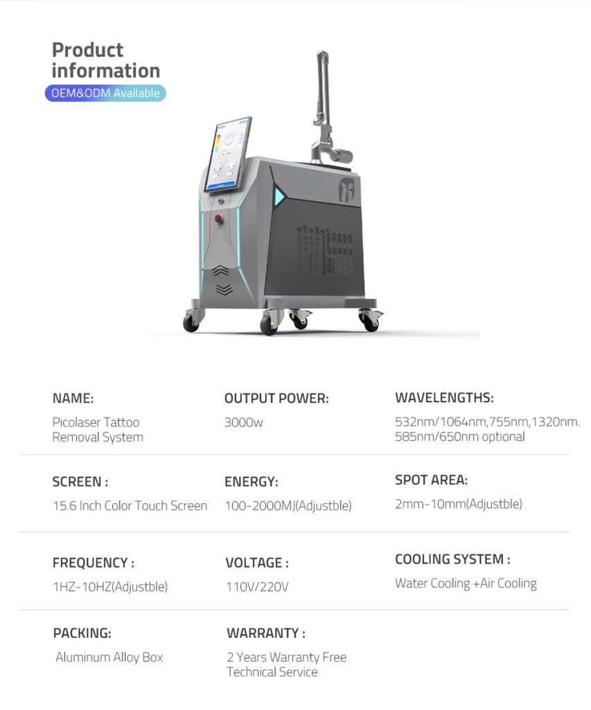 Picosecond laser tattoo removal system | 3000W | 532nm 1064nm 1320nm |